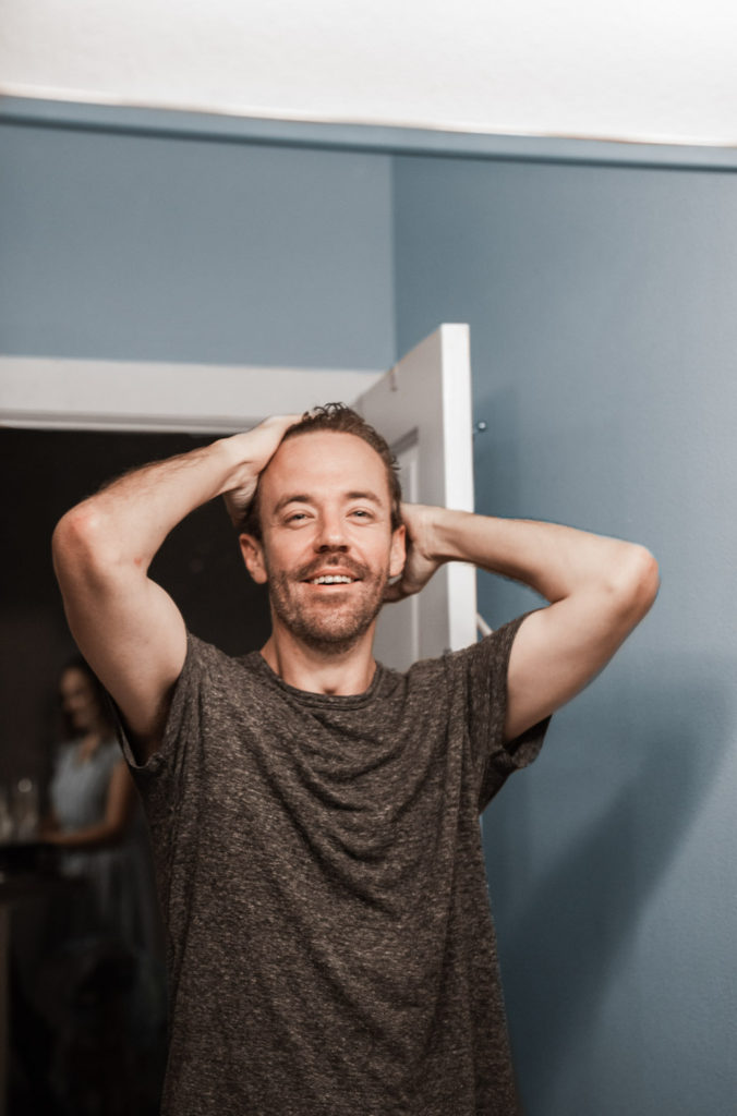 Groom in his bathroom getting ready for his wedding day